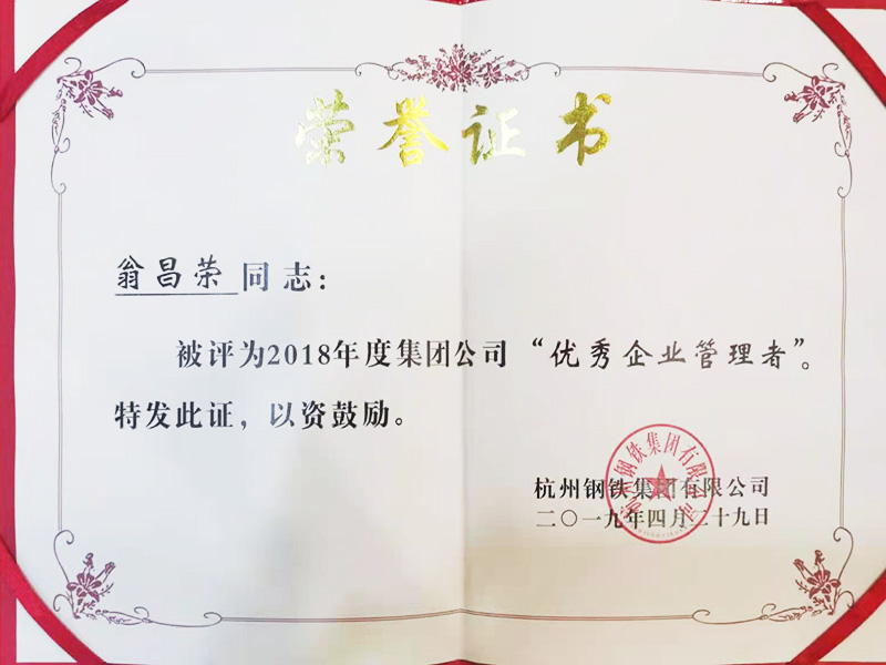2019年4月杭鋼集團授予富春公司董事總經理翁昌榮“優秀企業管理者”稱号。